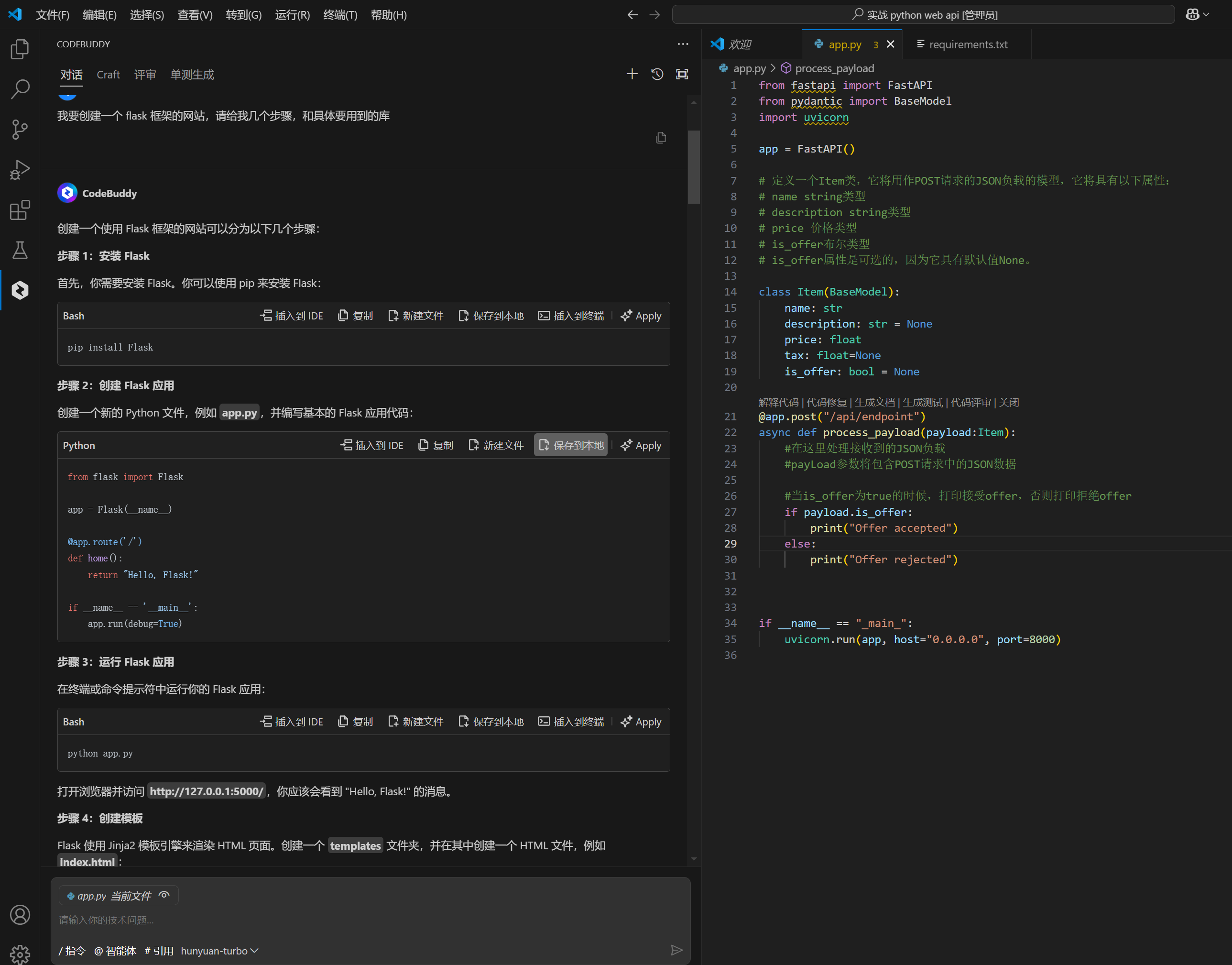 接下来,我们用腾讯云代码助手,实现 Python Web 网站。
