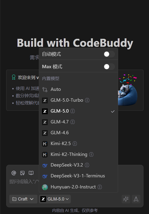 内置多种模型,您可以根据实际需要自由切换。关于如何切换模型请参考 模型配置。