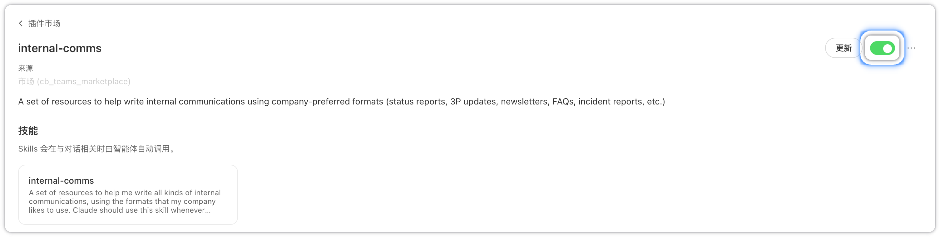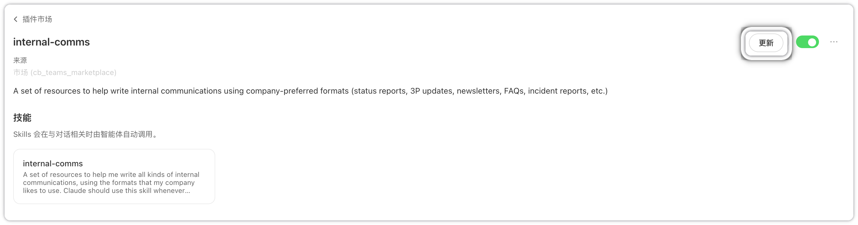 查看已安装插件,执行启用、停用、更新等操作。