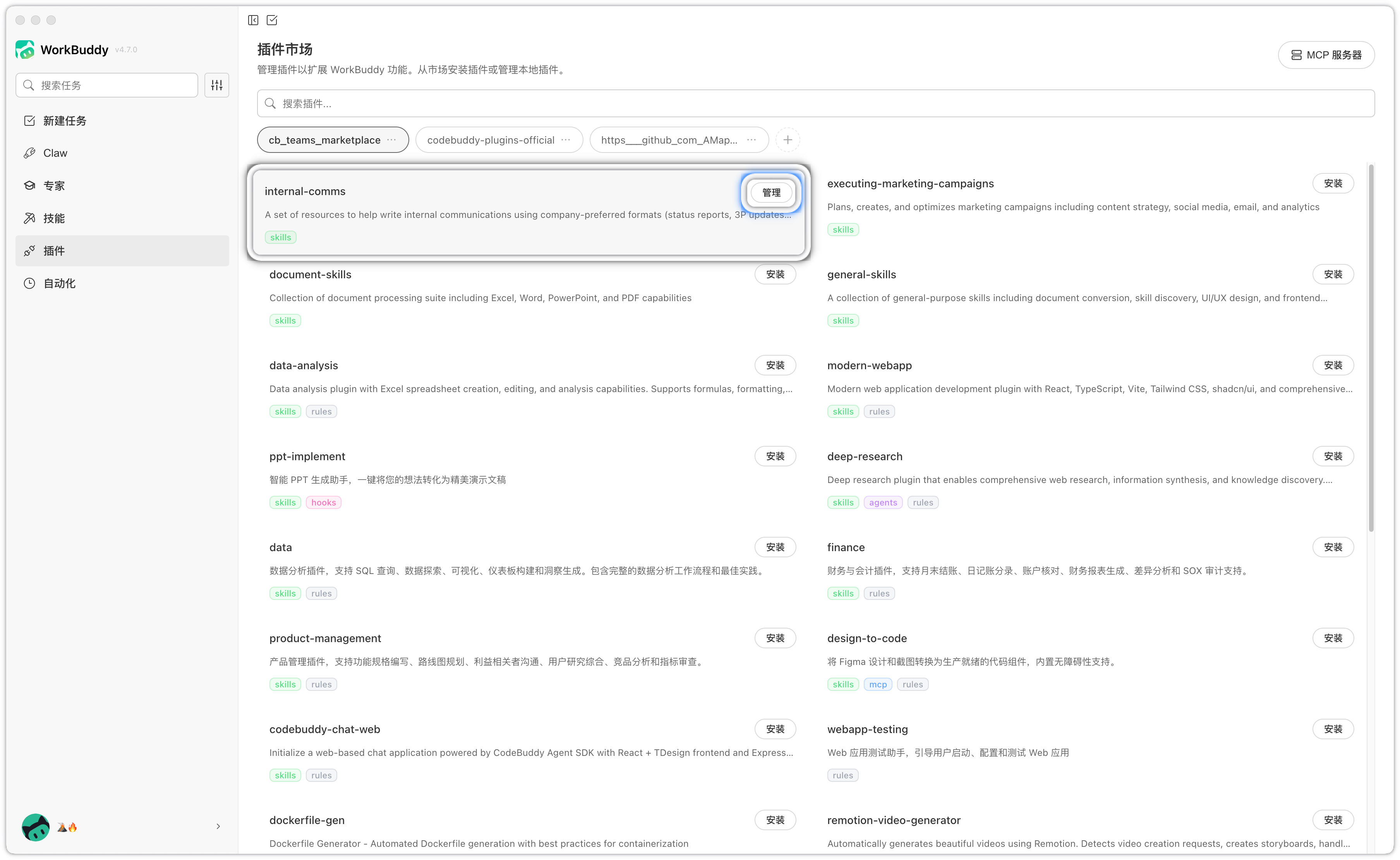 插件市场支持关键词搜索,可快速定位目标插件。