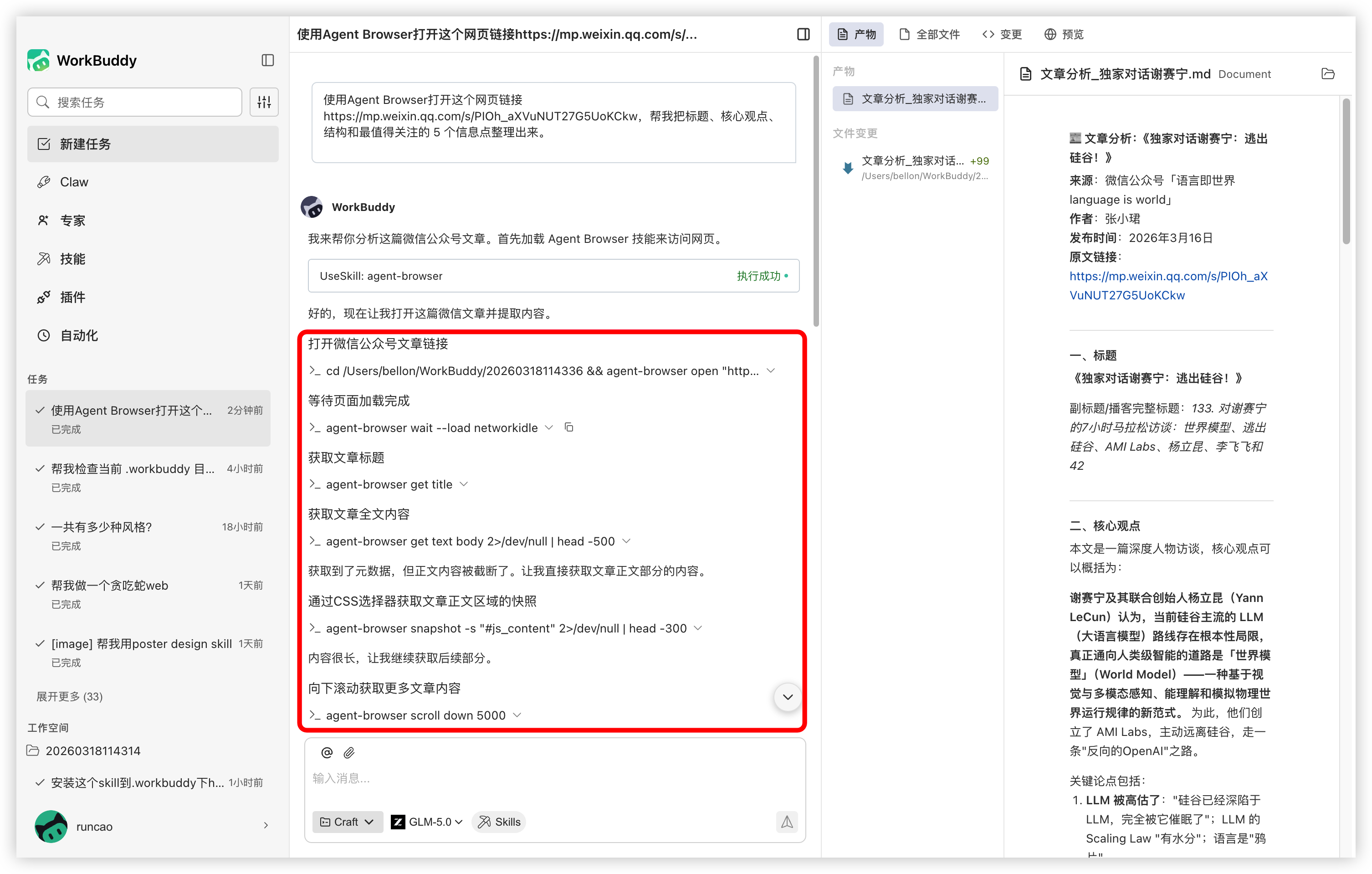 可以看到,WorkBuddy 会模拟真实浏览行为,按步骤读取页面内容。